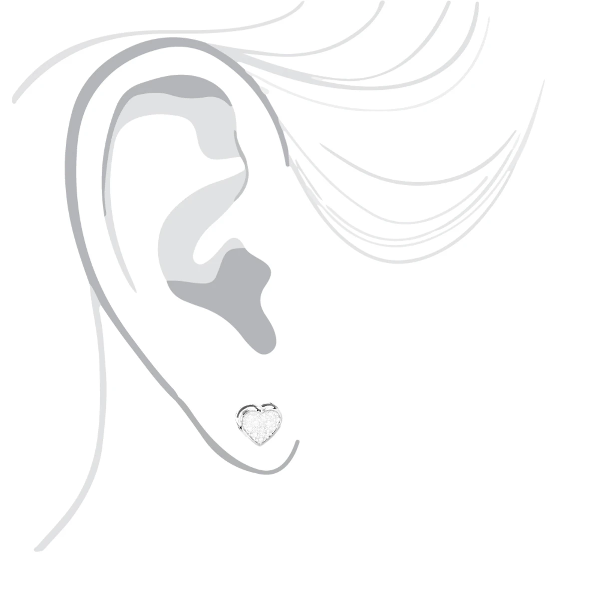 10K White Gold Pave Round Diamond Small Heart Earrings 0.1ct