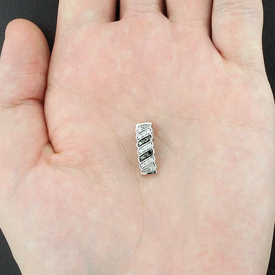 Closeout Item: This Ladies 14K Black and White Diamond Pendant showcases 0.27 carats of pave-set round white and black diamonds. Featuring a unique black and white swirl design and a highly polished gold finish, this women’s diamond slider (a slider is a pendant that is not fixed but slides along the chain) makes a traffic present. Pair this pendant with one of our women’s chains to make it into a unique looking necklace. Matching white and black diamond earrings are also available for a set below. You also can personalize this piece or check we’ve already made and create your own design.