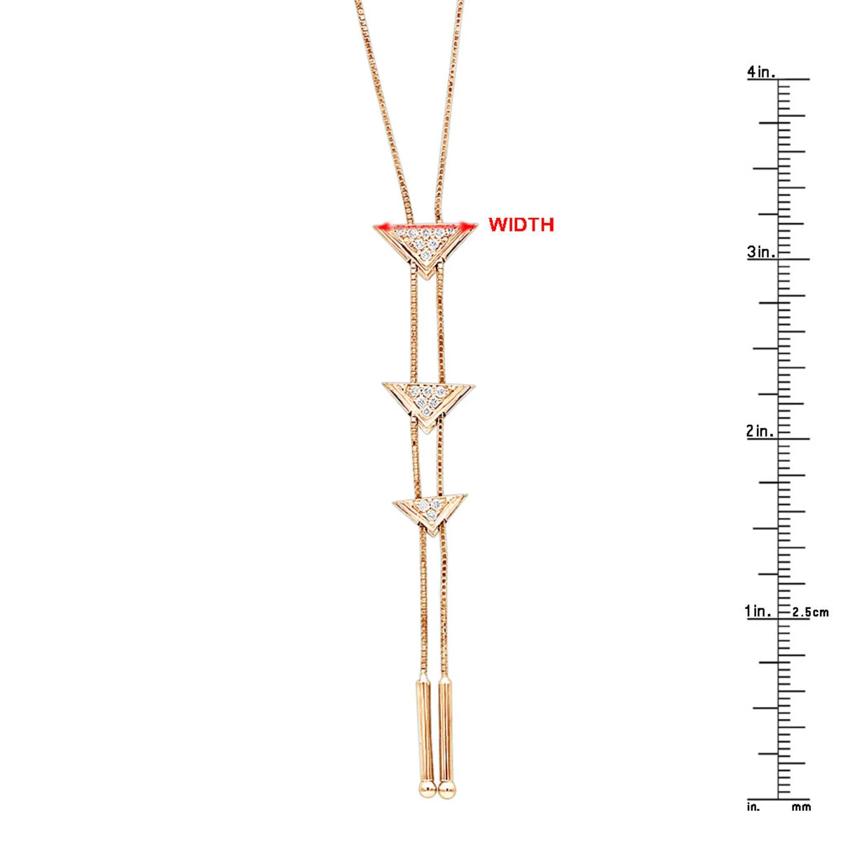 Luxurman Women’s Diamond Necklaces and Pendants Collection: This very unique and delicate looking Adjustable Diamond Triangle Necklace for Women is made from solid 14k gold and features 3 triangles of different sizes (larger at the top and smaller to the bottom) with a chain going through the triangles which can be adjusted to make this necklaces different length to fit your body type and style. The triangles are decorated with a total 1/4 carat of genuine pave set round diamonds. This diamond necklace makes a great gift and comes in 14k white gold, yellow gold and rose gold, with a nice gift box included.