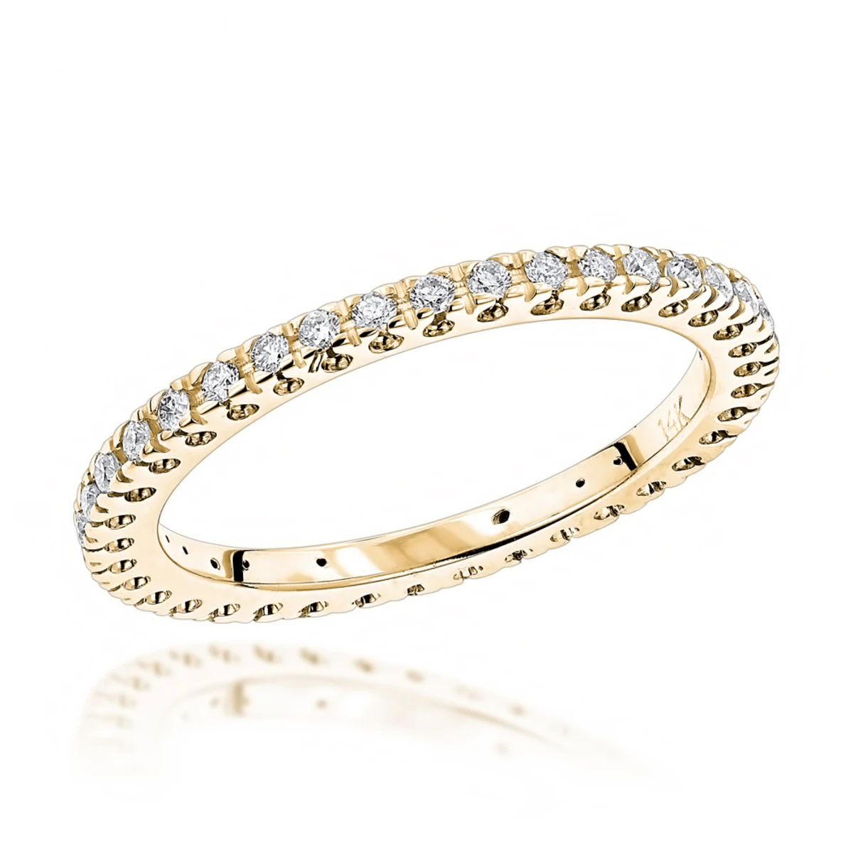 This Round Diamond Eternity Band features 0.37 carats of round diamonds (37 diamonds). This diamond eternity band is available in Platinum, 18k or 14k yellow, rose, white gold, various sizes, and can be customized with any color and quality diamonds. Price and description is for a ring in 14k gold and size 6. Please note: it will take us 3-5 business days to make this ring for you so please plan accordingly. Please contact us at 212-398-3123 if your size or desired option is not listed.
