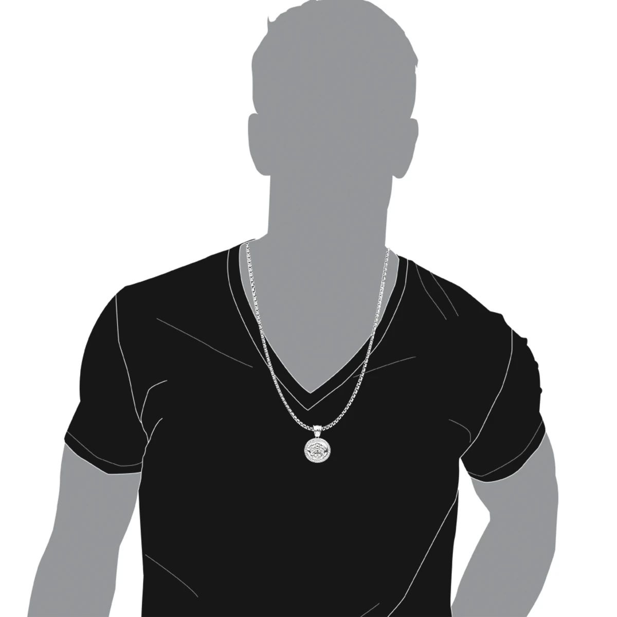 14K White Gold Unisex Diamond Versace Style Pendant 0.60ct Medusa Medallion