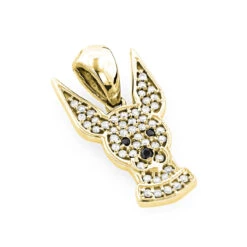 This Black and White Diamond Dog Pendant in 14K gold showcases 0.51 carats of genuine diamonds. Featuring a unique design and a highly polished gold finish, this designer diamond charm is available in 14K white, yellow and rose gold. Chain must be purchased separately. You also can personalize this piece or check we’ve already made and create your own design.