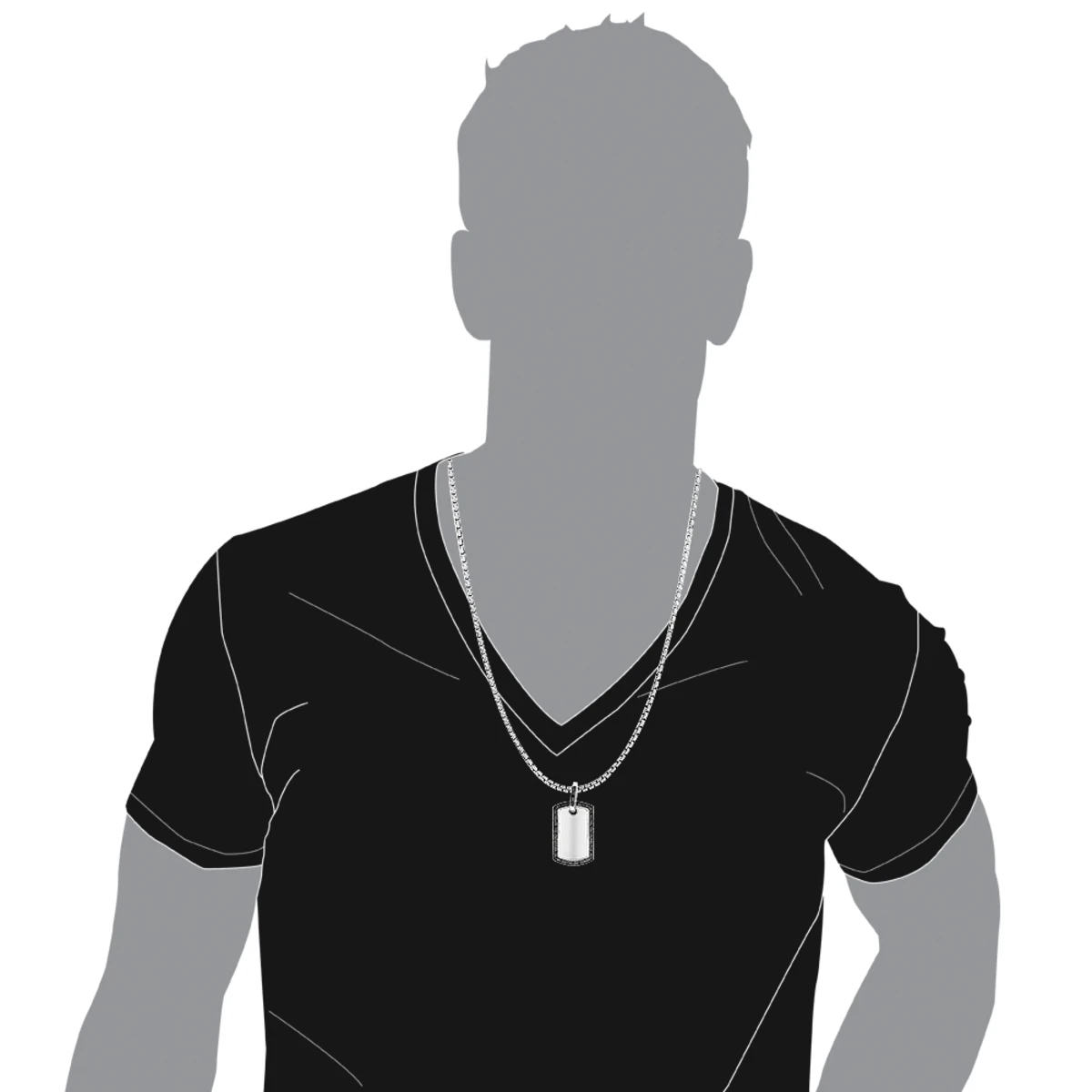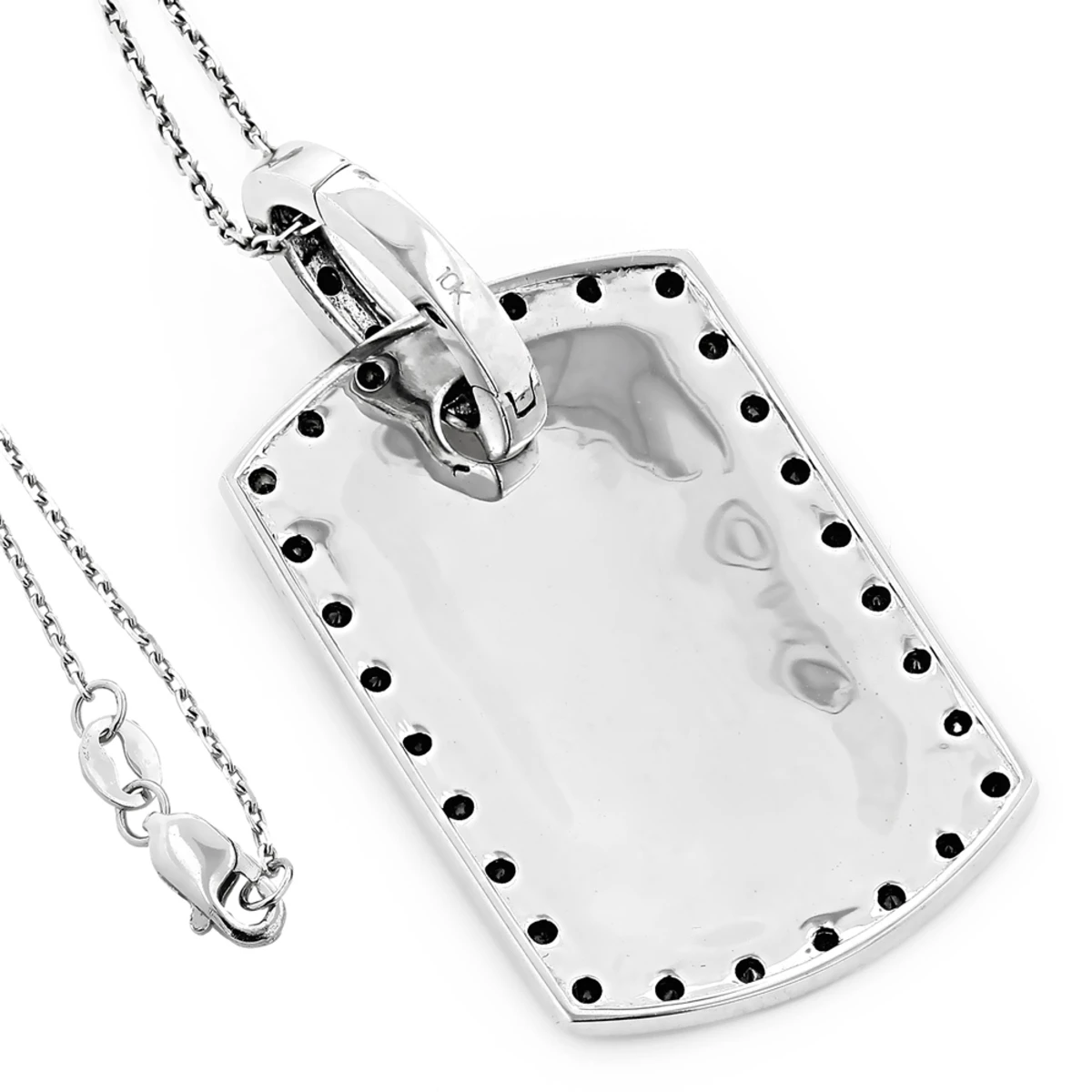 Engravable Small 14K White Gold Black Diamond Dog Tag Pendant .80ct