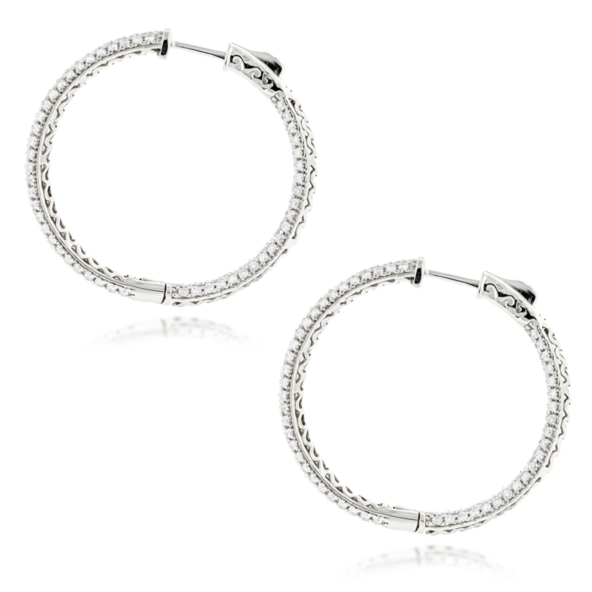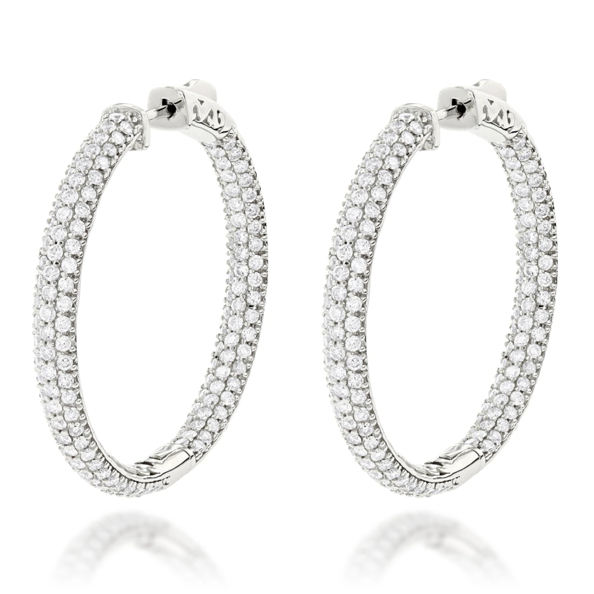 Large 14K White Gold Inside Out Diamond Hoop Earrings 4.6ct