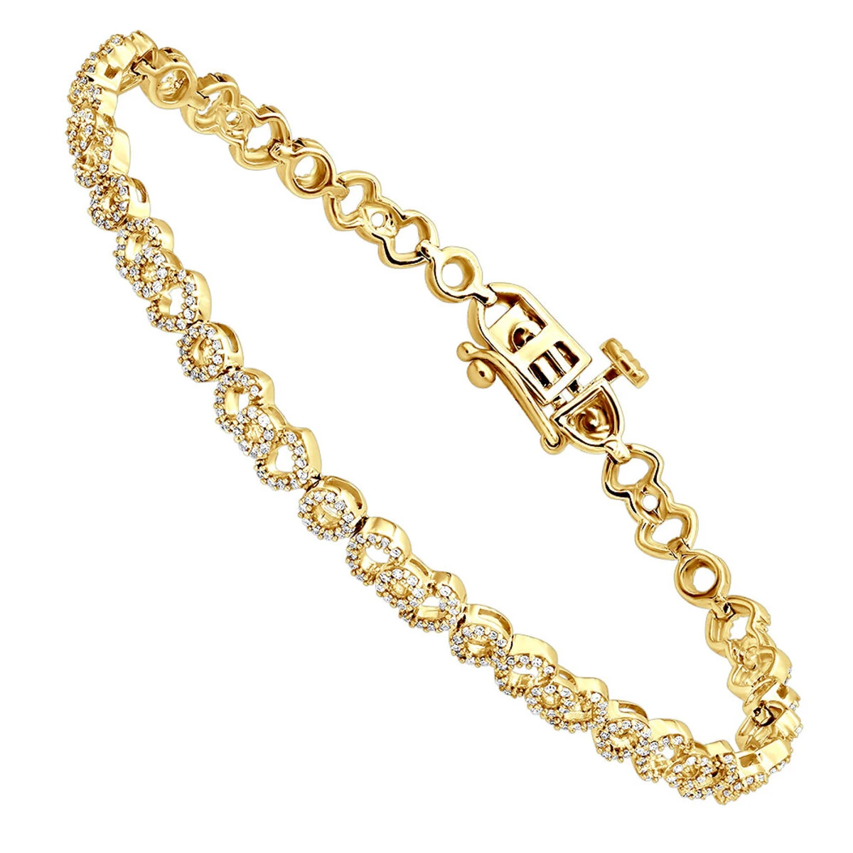 This exquisite Pave 14K Gold Ladies Diamond Bracelet 1.31ct from ItsHot is the perfect way to add a touch of sparkle and elegance to any outfit. Crafted from 14K gold in your choice of white, yellow, or rose, this bracelet features a stunning array of diamonds set in a pave setting. The diamonds have a clarity of SI-I and a total carat weight of 1.31ct, making this bracelet a truly luxurious piece of jewelry.The bracelet is designed to fit comfortably on the wrist and is sure to make a statement. The diamonds are set in a way that allows them to catch the light and sparkle beautifully, making this bracelet a truly eye-catching piece. The bracelet is perfect for any special occasion, from a night out with friends to a formal event.This bracelet is sure to become a treasured piece of jewelry that will be worn for years to come. It is the perfect way to show someone special how much they mean to you, or to simply add a touch of glamour to your own wardrobe. With its timeless design and luxurious materials, this bracelet is sure to be a favorite for years to come.