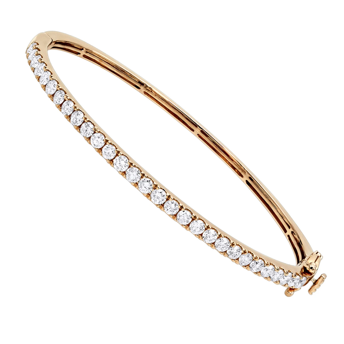 This gorgeous Solid 14K Gold Diamond Bangle Bracelet for Women by Luxurman weighs approximately 10 grams and showcases 2 carats of dazzling round cut white diamonds. Featuring a luxurious design and great attention to detail, this fabulous ladies diamond bracelet is available in 14K white gold, yellow gold and rose gold.